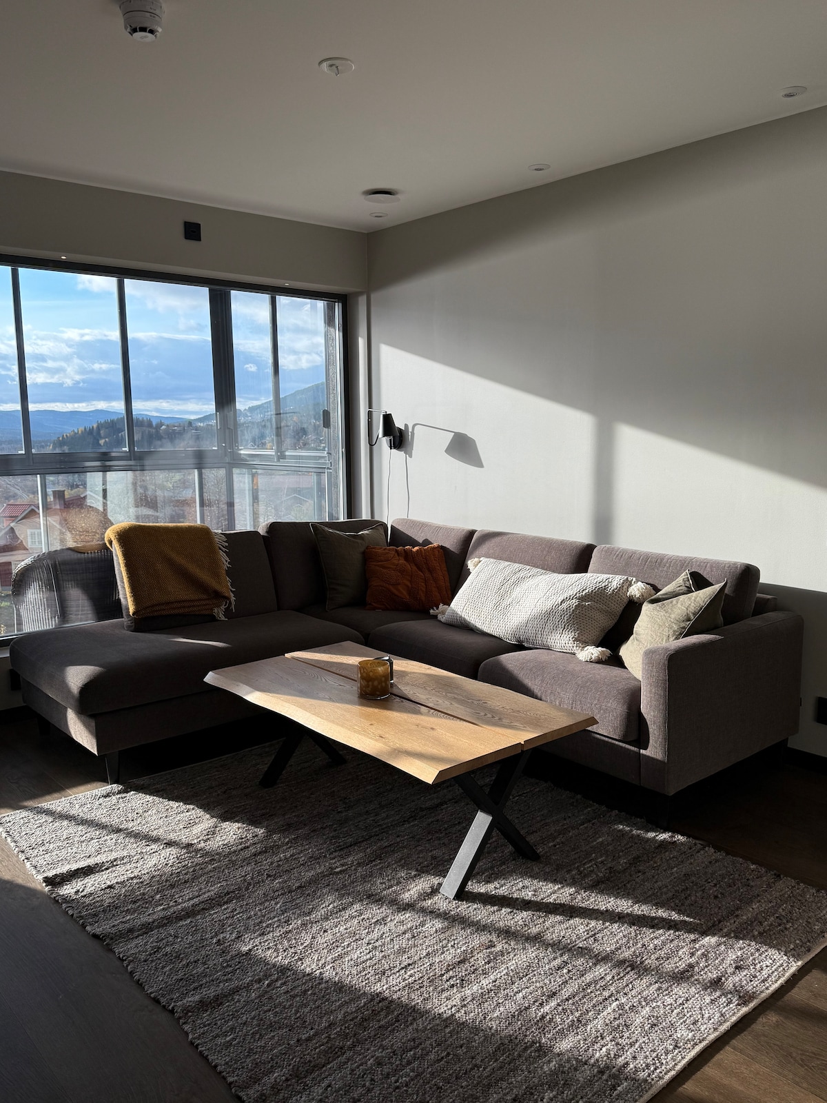 Åre Björnen: Rymlig och modern lägenhet om 90 m2 i bästa solläge (sydväst) med stora fönster ostörd utsikt mot Åredalen. Perfekt för den stora skidåkar/vandrarfamiljen. Njut efter en dag på fjället i det stora allrummet som har öppen spis, en väl tilltagen soffgrupp och inte minst ett stort träbord som alla kan samlas kring eller slå er ner ute på terrassen och njut av solnedgången över Åredalen. Efter kalla skiddagar ta en bastu i vår exklusiva nybyggda bastu.
