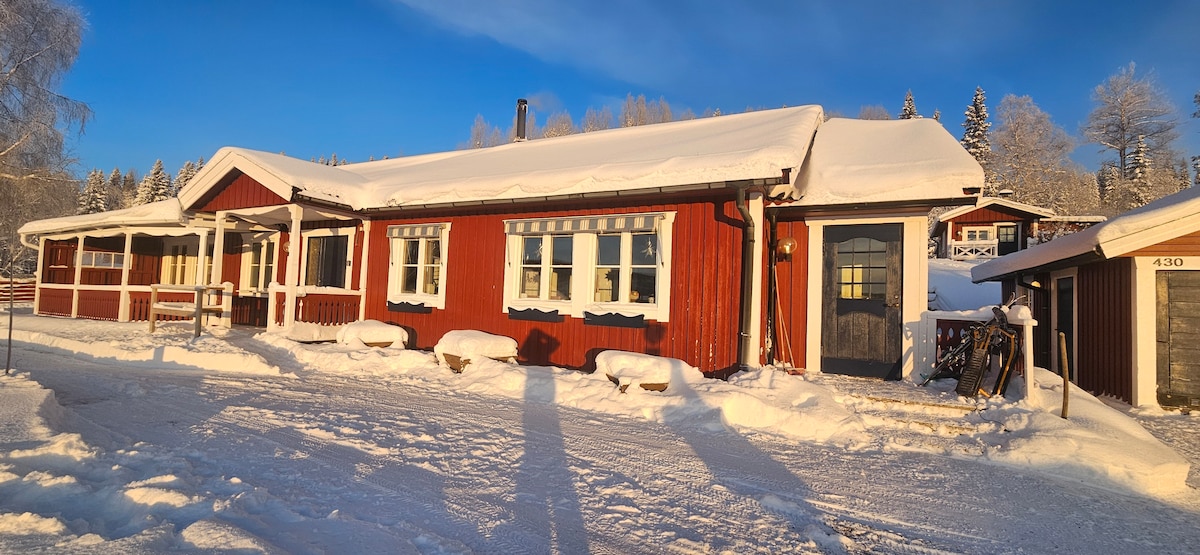 In charming Björnänge, 4 km from Åre Torg, you live as a rock star in this house. Also suitable for skiers, cyclists, hikers, families and chocolate lovers (Åre Chocolate factory is 100 meters away). Final cleaning, bed linen & towels included. Lots of space and all the amenities. 4 bedrooms (10 beds), 1 bathroom (steam shower & bathtub), 1 toilet, cinema lounge, laundry room, large balcony, slide, trampoline, tree house, a lovely large kitchen and stunning views of the lake and the mountains!