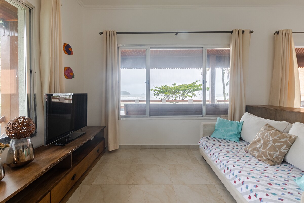Juréia房源,位于沙滩上,带有面向大海的游泳池。