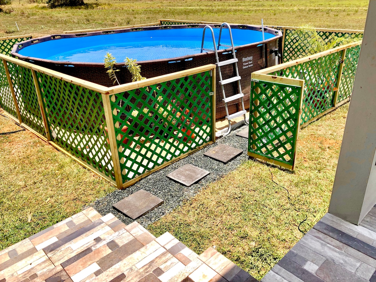 Enjoy a unique experience in this modern short-term rental container home, located near the best beaches in Arecibo. Ideal for those looking for a quiet stay close to the sea, this property offers a spectacular view of the Atlantic Ocean from its terrace. The container is fully equipped with a functional kitchen, private bathroom, and an outdoor half bath for convenience. Relax in the heated pool