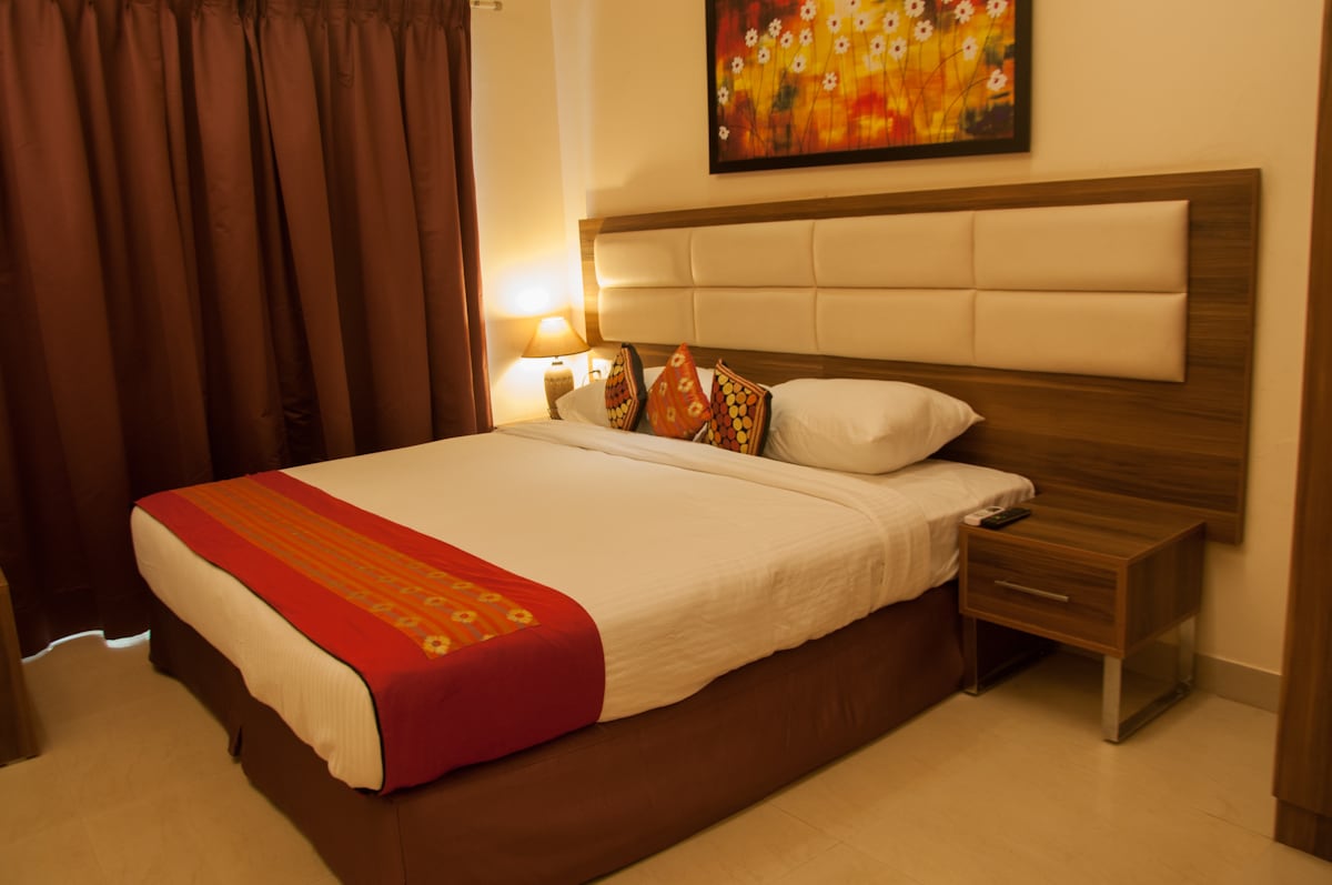 Triente Suites, Premium Apartment Hotel in Kalyan Nagar, Bangalore. One bedroom in a 2bhk apartment is provided . Triente Suites is a spacious apartment hotel located in Kalyan Nagar, 33 kms from the Bangalore International Airport and 17 kms from Bangalore City Junction. Each apartment has 2 bedrooms, a living area, dining room and kitchen. We have 8 apartments with a choice of king-size, queen-size or twin beds and can accommodate 32 guests. free Wi-Fi and private car park for our guests.