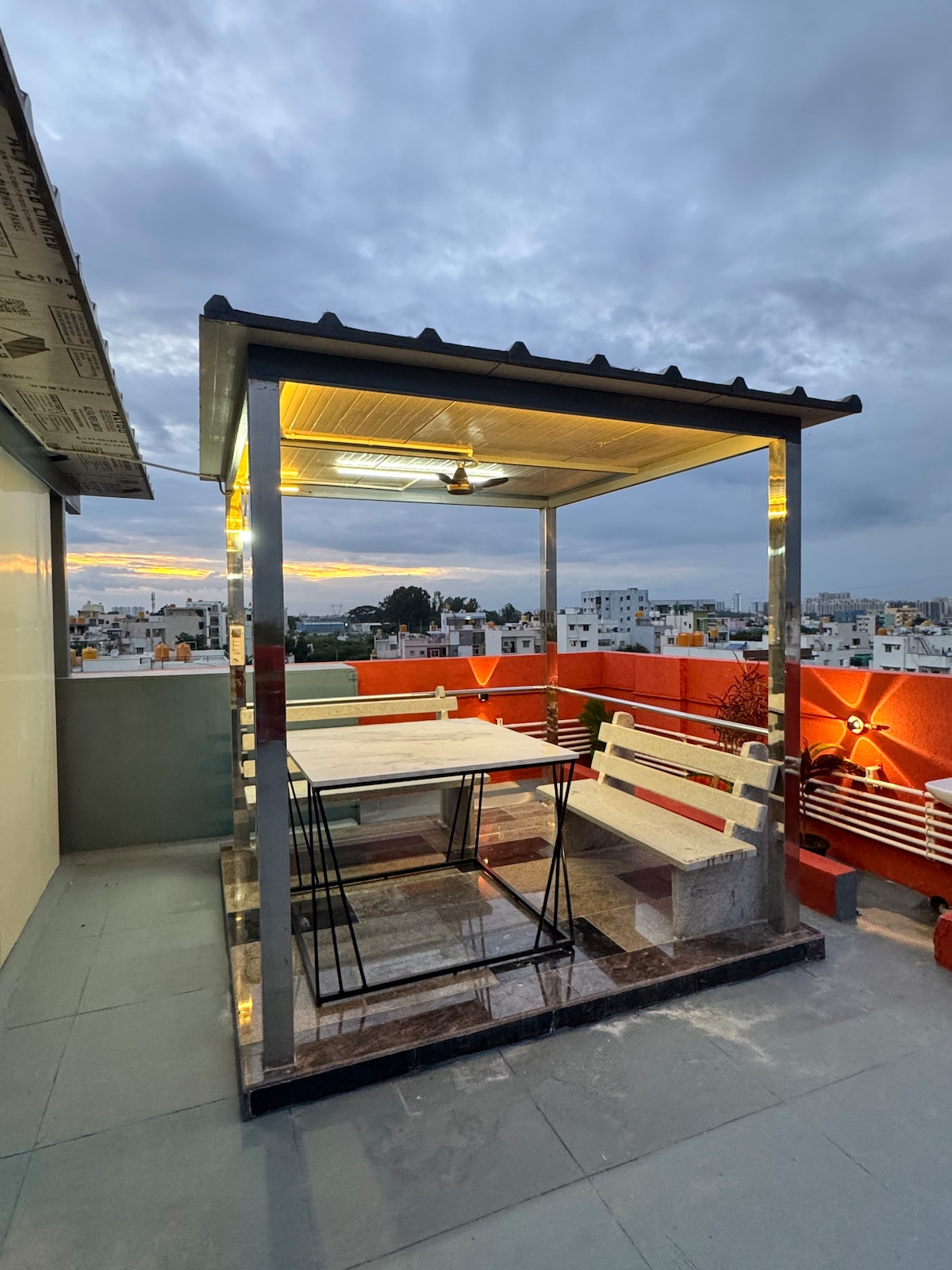 Earthly decor with abundance of light and fresh air, a penthouse with a private terrace equipped with a coffee table, yoga and workout space, accessible all through the year. A mini library and a common lounge area to relax is also well set up. The place is 15 mins away from two major Metro stations. Spacious bed room (300sq ft) excellent ventilation with private Terrace and Power Backup Very neatly maintained facility. Residential locality with park, market, hotels in close proximity.