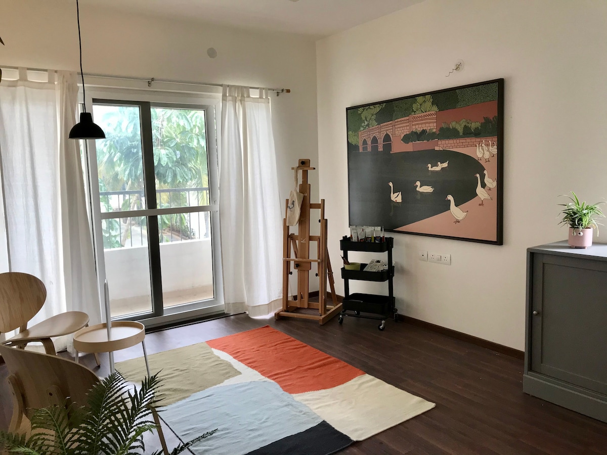 时尚的Japandi 2bhk公寓。 5分钟->Jayanagar。
