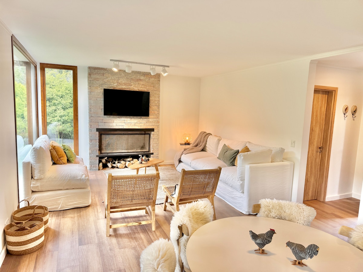 The charm of this house is immediately upon entering this modern space full of life, bathed in sun and light. The living room, dining room and fully equipped kitchen share a completely open space with stunning views of Lake Nahuel Huapi. The wooden deck is the perfect place to enjoy a magnificent patagonian sunset. THERE IS NO PROTECTION FOR BABIES/CHILDREN AT THE INTERIOR STAIRS AND BOTH EXTERIOR DECKS.