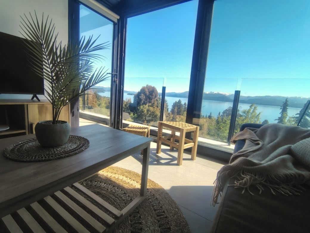 Departamento moniambiente de 50 mts2 con imponente vista sobre el lago y a la Isla Victoria en la zona de Llao Llao. Tiene un pequeño living, cocina completa con horno y microondas, cama king size que dan a un balcón terraza. Baño completo con bañadera Bajada propia a la costa de lago Servicios Wifi Balcón terraza con reposeras Ropa de cama y toallas se cambian c/ 5 días Secador de pelo Estacionamiento privado Exclusivo para parejas No hay desayuno No hay Tv Se cobra limpieza final usd20