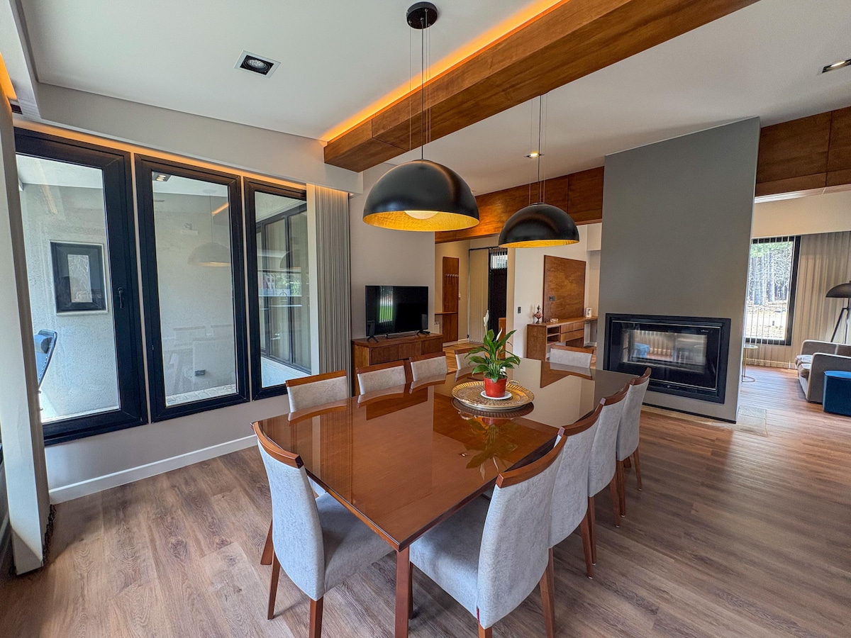 Architect-designed cabin surrounded by native forest, with sweeping lake and mountain views. Floor-to-ceiling glass blurs the line between indoors and nature. Wake up in the treetops, breathe the forest air from the spacious deck, and unwind in timeless silence. Minutes from Cerro Catedral and nestled in Arelauquen Golf & Country, it’s a peaceful, design-forward retreat for families, couples, and dreamers alike.