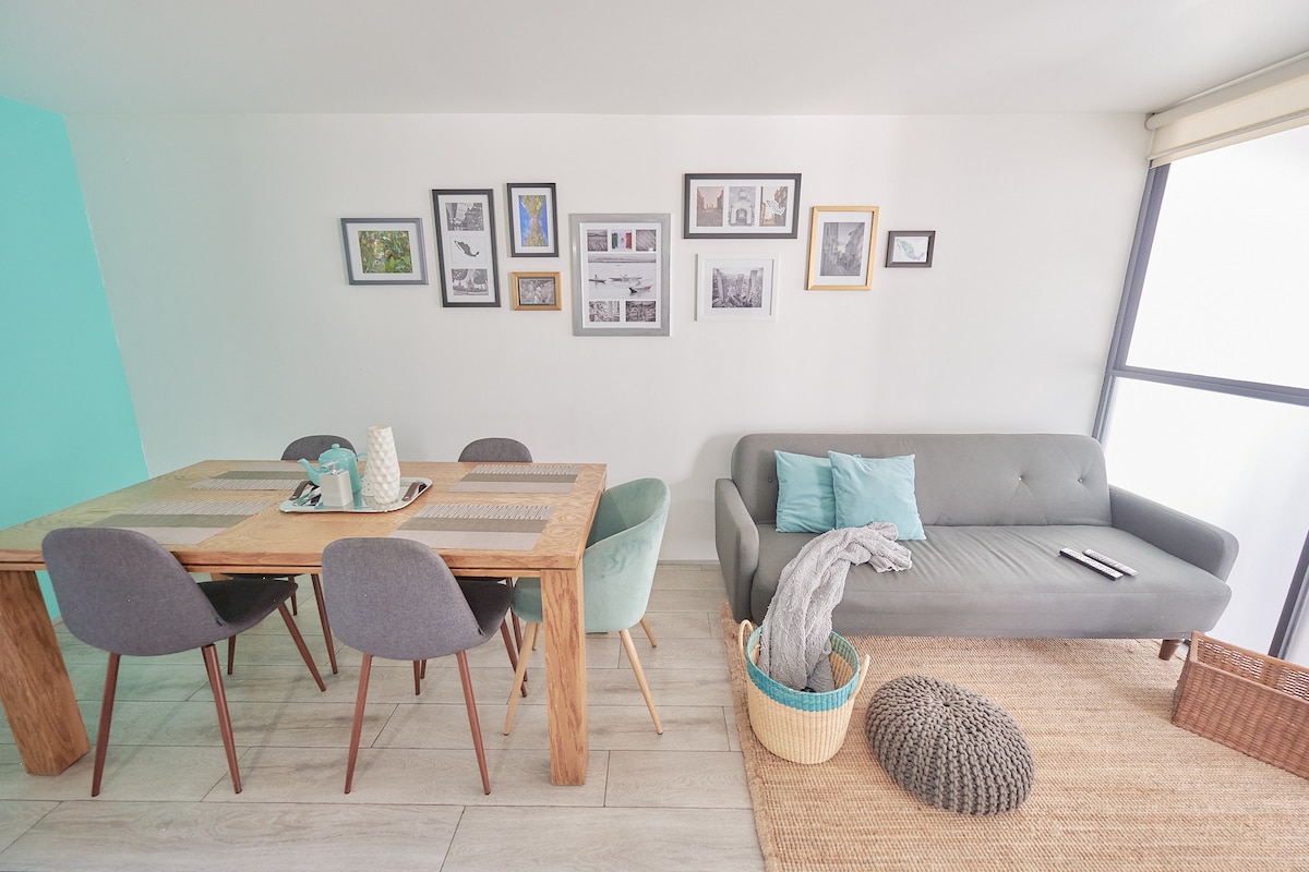 自 2018 年起,Un Lugar Tuyo en Cdmx 意味著與家人或朋友的完全信任和排他性;舒適、清潔、零城市噪音、獨立、寧靜、安全和休息。它由一個小餐廳和廚房、浴室和 2 張床 + 1 張單人床的臥室組成,位於公寓物業內。位於一樓。可搭乘 Metrobus、Metro Bellas Artes 地鐵,距離佐卡洛 (Zócalo) 12 分鐘路程。每周和每月的折扣讓您的長期住宿更加舒適。歡迎世界!