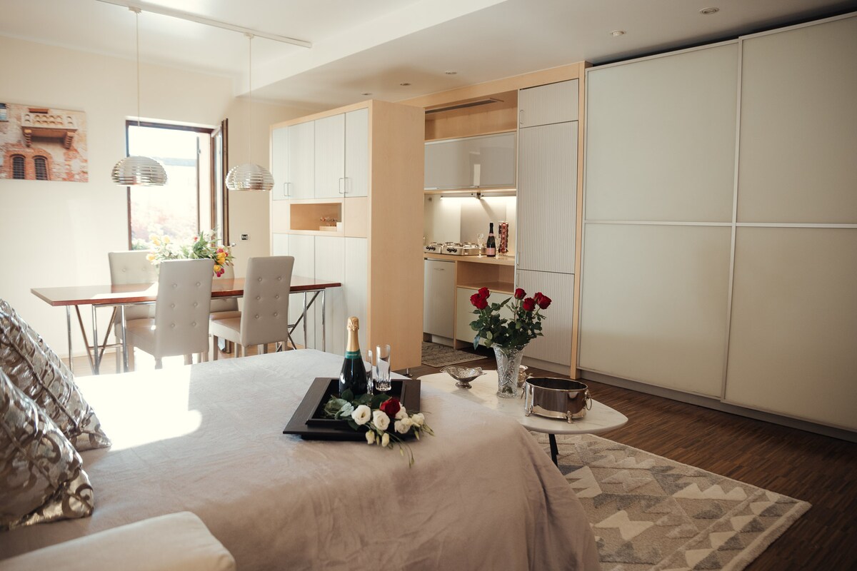 Attic in the Historic City Center – Steps from Verona Arena. Stay in the heart of Verona’s historic center, close to the main cultural attractions. This two-level apartment features a spacious master bedroom with a king-size bed and high-quality topper, along with a stylish bathroom with luxury toiletries.Upstairs, enjoy a bright open-space area with a fully equipped kitchen and elegant lounge.