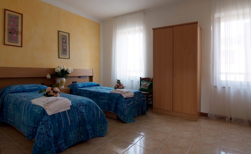 The flat is located 1500 mt. from historic town centre and it is conveniently served by bus (the bus runs every 10') that carry to town centre (10'), the Railways Station (15'), the Fair (17'). The rooms are confortable and sunny, they have new forniture and a private refurbished bathroom. We set up the rooms every day.