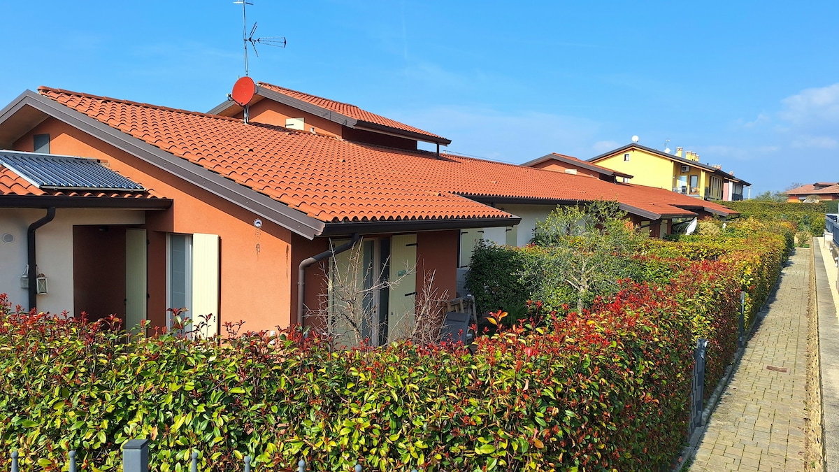 Rilassati con tutta la famiglia in questo alloggio tranquillo. L'appartamento ideale per 2 persone adulte o 4 persone (se ci sono due ragazzi che dormono sul divano letto in sala) dove potersi rilassare, e vivere l'esperienza del Lago di Garda che è a 10 minuti o di Verona a 15 minuti. Siamo a pochi metri dalla piscina Comunale, dai campi da tennis e dai parchetti per i bambini. A 800 metri dal centro di Bussolengo (VR). Siamo a piano terra con giardino e porticato con salottino esterno.