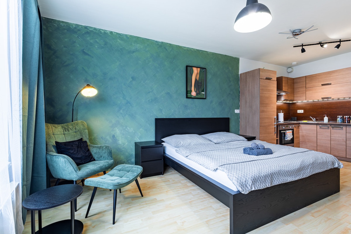 Útulný, pokojný a moderný apartmán sa nachádza v bratislavskej lokalite Ružinov, v širšom centre mesta. Ubytovanie je komplexne vybavené, hostia môžu využívať bezplatné Wi-Fi. Hneď za budovou je platený parkovací dom. Apartmán má 1 spálňu, vybavenú kuchyňu s chladničkou a mrazničkou, práčku a kúpeľňu so sprchou. V blízkosti apartmánu sa nachádzajú nákupné centrá Central a Nivy s hlavnou autobusovou stanicou, trhovisko Miletička, jazero Štrkovec, kúpalisko Delfín a Zimný štadión Ondreja Nepelu.