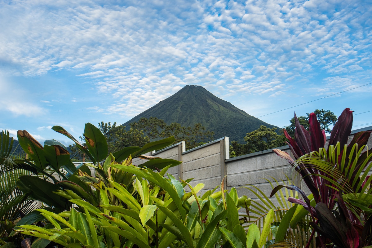 Un hospedaje para escapar de la rutina y conectar con la naturaleza, tiene un diseño moderno con una cálida decoración, rodeado de naturaleza donde podrás observar muchas aves, una linda vista al volcán, balcón, terraza, una refrescante piscina y jacuzzi privado. Un lugar ideal para parejas, amigos o para que puedas teletrabajar tranquilamente. Ubicados estratégicamente cerca de todas las actividades principales y a tan solo 2.5 km del centro de La Fortuna y a 1 km de La catarata La Fortuna.