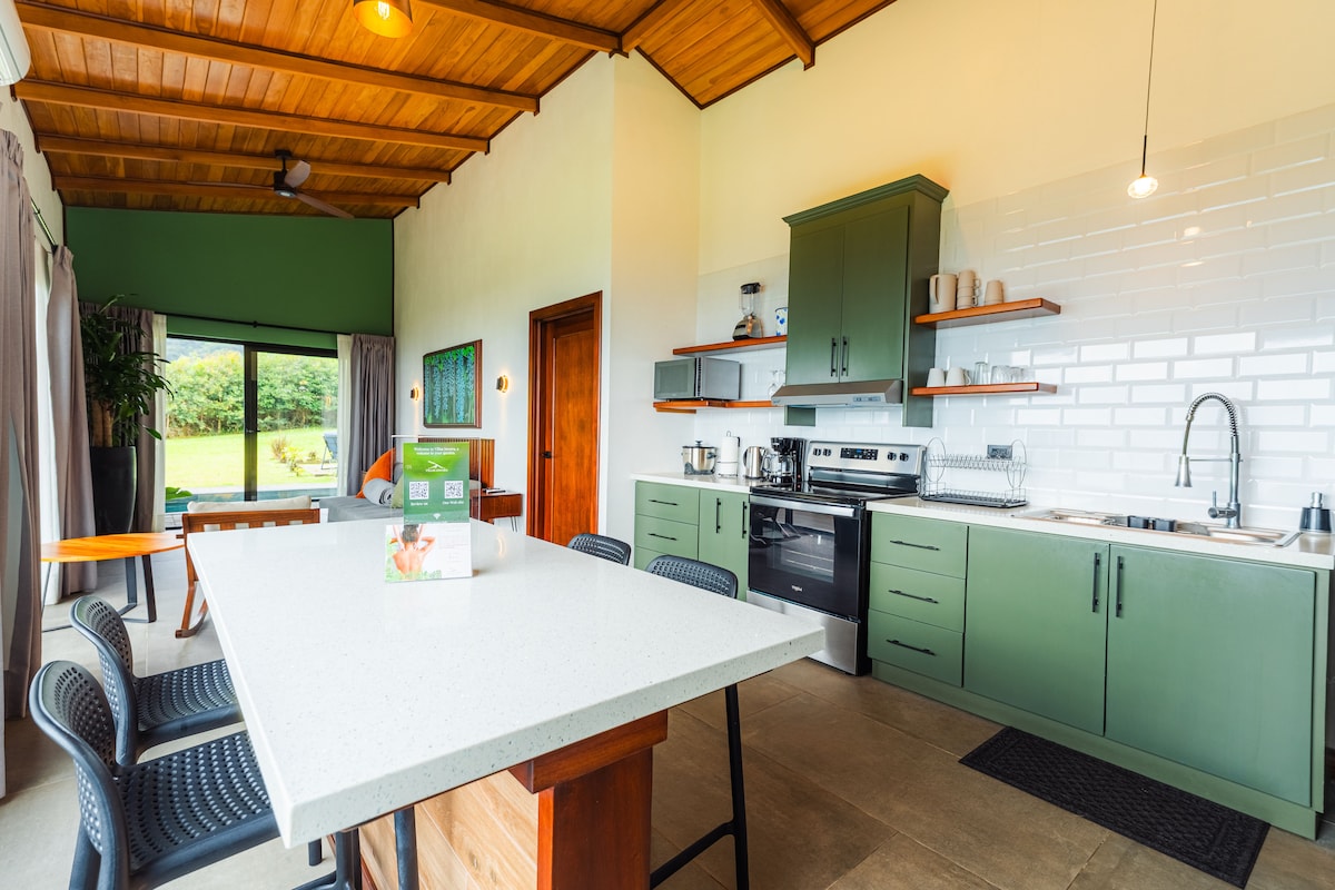 Welcome to Pure Oxygen Rainforest Villa, a serene retreat 7 miles from La Fortuna. Perfect for romance or relaxation, this villa blends luxury with nature. Enjoy a king bed, Smart TV, and high-speed Wi-Fi. The villa features a modern bathroom, outdoor shower, fully equipped kitchen, and laundry facilities. Relax on the terrace with rainforest views or explore the lush garden. Private parking ensures convenience. Escape to tranquility and immerse yourself in Costa Rica’s vibrant rainforest.