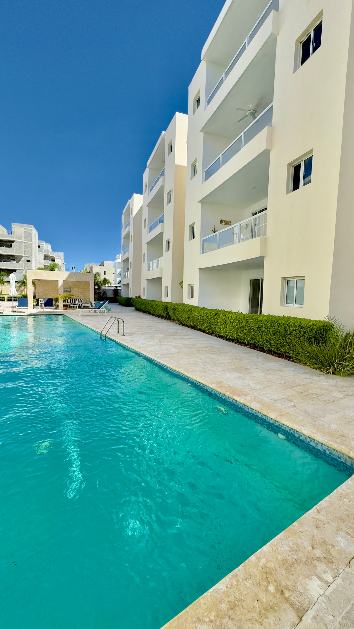 You will not find a more central location and desirable residence as we have here in Mia Hermosa .. Just a few minutes from a varied amount of bars , restaurants , shops and a few minutes more to our gorgeous Bavaro Beach . The apartment is stunning with 50 MBPS wifi over looks the dreamy pool with loungers and shade for your leisure . Gym ion site .Apartment is newly furnished with brand new appliances and stylish furniture with the added bonus of two balconies to enjoy . You will be back !
