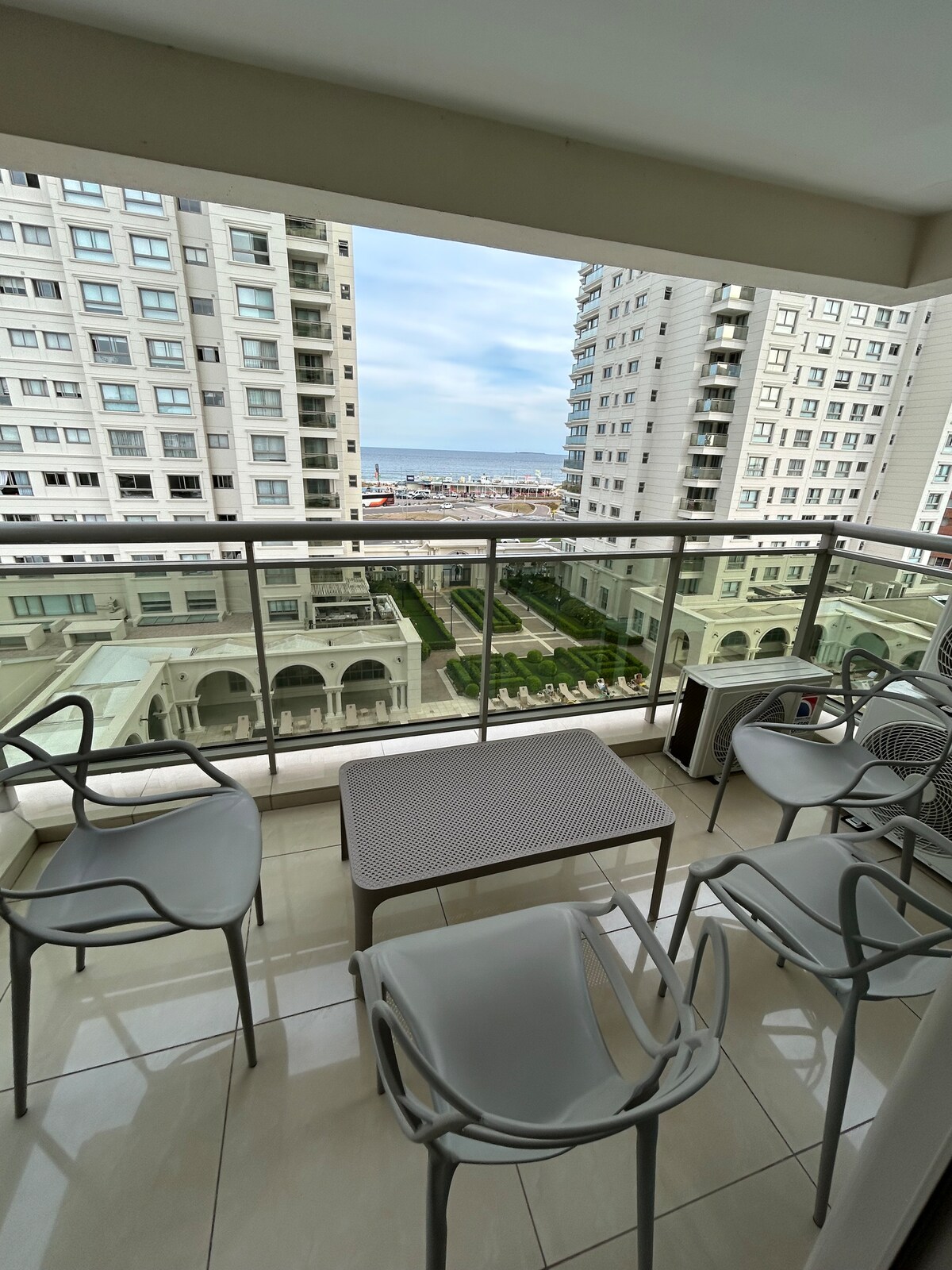 Precioso apartamento con vistas al mar a 120 metros de la playa, 1 dormitorio, living, baño, cocina y balcon, totalmente equipado y super comodo. El edificio cuenta con piscina climatizada interior con un jacuzzi , gimnasio, recepcion, dos piscinas exteriores y parrillero , un parrillero en la terraza con vista a la playa Mansa y la Brava y tambien parking. En una zona llena de restaurantes, mercados y mas. 😊