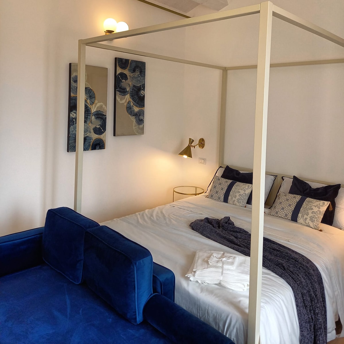 Step into a home where the minimalist decor is elevated by designer lighting, vintage furnishings, and contemporary art adorning the walls. The apartment is on a top floor 1880 building, NO ELEVATOR (travel light), the location is on the centre of Siracusa (5 min walk from Ortigia and the other amenities of the town) bars restaurants and small and big supermarkets are walking distance (maximum 5 min) . There's one bed room (ask if you need a baby bed) with a double queen size bed. One spacious bathroom and a kitchen. A full furnished apartment with everything you need, coffee maker, kettle, washing machine dishes. The terrace has a unique view, perfect for dinners and an aperitivo at sunset. Over looking on the small bay the east view and the west view overlooking on the mountains, if you're lucky you'll be able to see the Volcano Etna. I use to live on the same floor, in another apartment at the next door Archeological park is 10 min walk, the bus station and train station are 5 min walk, beach and historical sites in less then 10 min walk.
