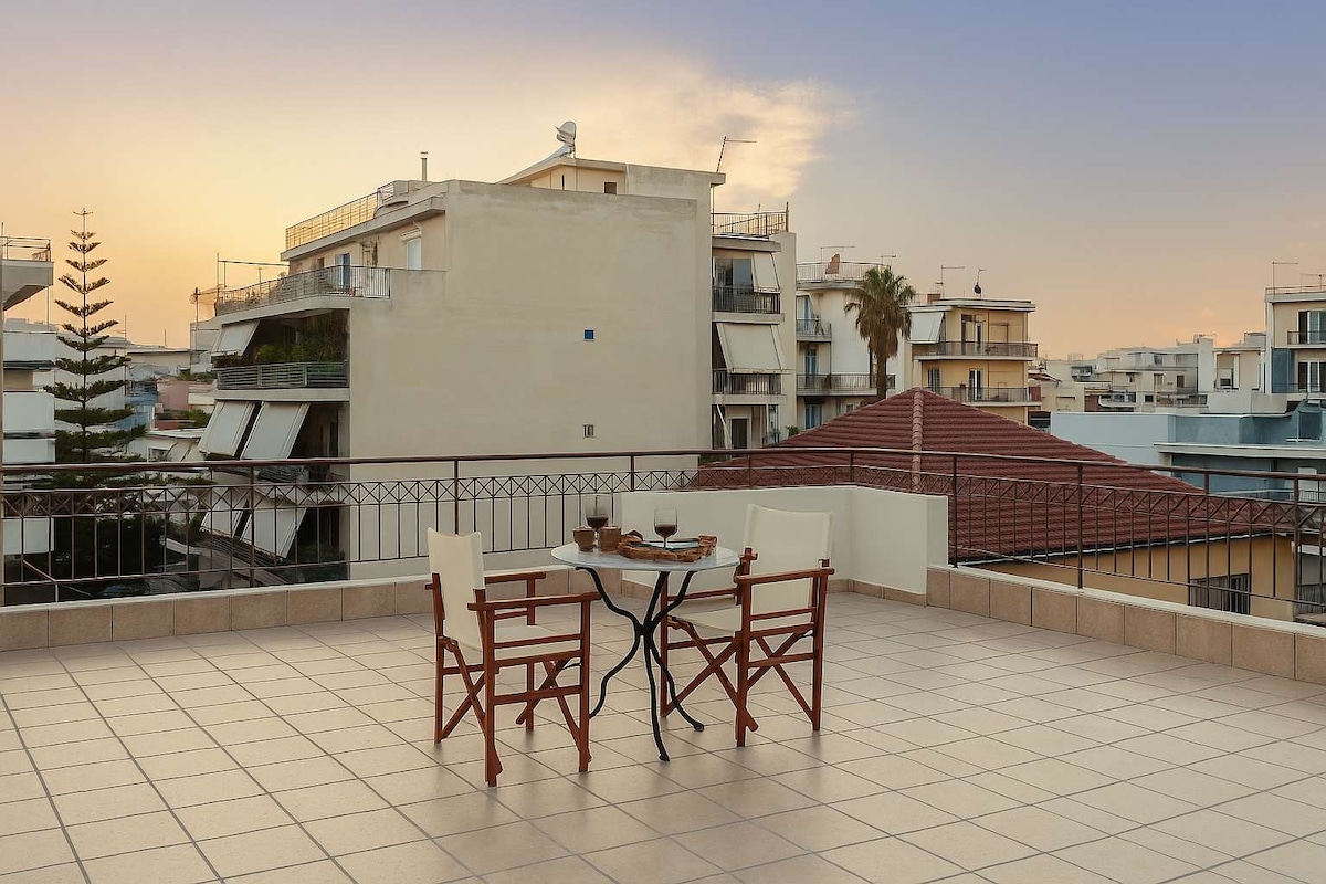 Newly finished, a bright stylish and fully equipped elegant 70m2 fully air- conditioned loft can easily accommodate the needs of 1-5 travelers. It is built in Kalamata in an uncrowded neighborhood on a quiet street with easy parking. Guests have full access to all household appliances, equipment , amenities, plus wifi connection. Both the local beach (1km) and the city centre (2km) make an easy destination. Grocery stores, eateries, small bakeries are all within a comfortable walking distance.