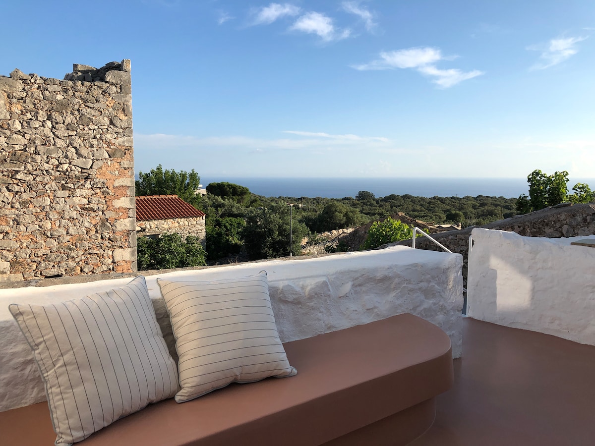 Welcome to the Cave House — a gem, renovated with traditional style, nestled in the stone-built village of Lagkada. Located between Messinian and Laconian Mani, you'll be perfectly positioned to explore both sides of the region: the beautiful beaches and fishing villages of Agios Nikolaos, Stoupa, Kardamyli on one side, and the wild, raw beauty of Limeni, Aeropoli and Diros caves on the other. All while enjoying fresh mountain air and a peaceful, open environment.