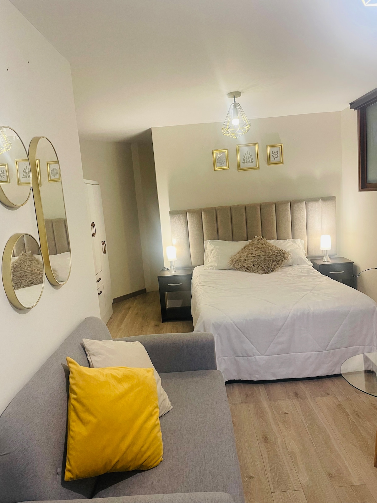 Relax in this quiet and elegant space. You will have the best Arequipa sunset from a charming balcony, in the most exclusive area of Cayma district. We invite you to visit this cozy mini apartment located in a private condominium with elevator, three blocks from the Plaza of Cayma and the best shopping centers, malls, banks and restaurants in the city. We have Netflix for free !
