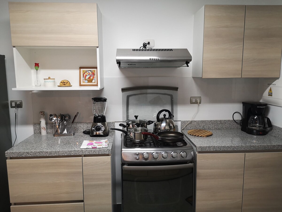 Cozy mini apartment fully equipped and located in the best district of Arequipa, just 3 blocks from the main malls, banks, 4 blocks from the Plaza de Cayma and very close walking to the Plaza de Yanahuara; very warm, lighted and ventilated; with views of a spectacular and unbeatable sunset from the living room and views of the imposing Misti volcano from the rooms. It is located on the fifth floor without an elevator at the moment. There is a construction in progress in front of the building.
