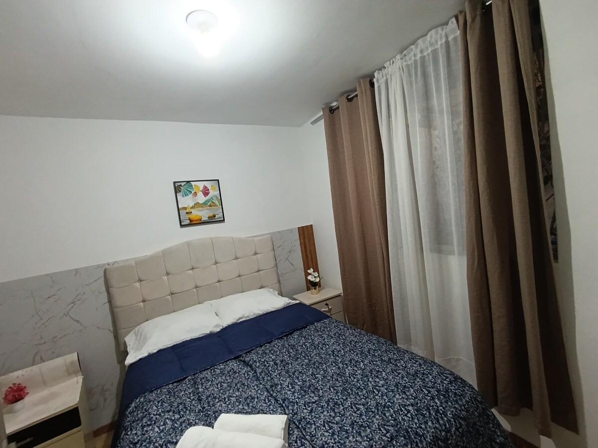 Disfrute de la calidez y comodidad de este departamento ubicado a 10 min del aeropuerto y 5 min de la zona comercial más completa de Arequipa donde podrás encontrar todo lo necesario para hacer de tu estadía una experiencia placentera . Cuenta con una habitación con baño privado una cocina con todos los electrodomésticos necesarios y una sala comedor que te brinda una chimenea ecológica que hará de tus noches frías las más cálidas .