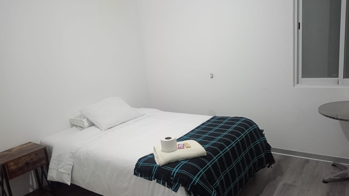 Confortable HABITACIÓN PRIVADA en Hotel Corporativo *** Cuenta con una cama de 2 plazas cuenta con un TV Smart e Internet Wi-Fi de buena velocidad La habitación tiene baño privado y ducha con agua caliente las 24hrs, además de amenidades gratuitas (PH, jabón y shampoo) Desayuno tipo buffet servido diariamente (de 7 a 9:30am)