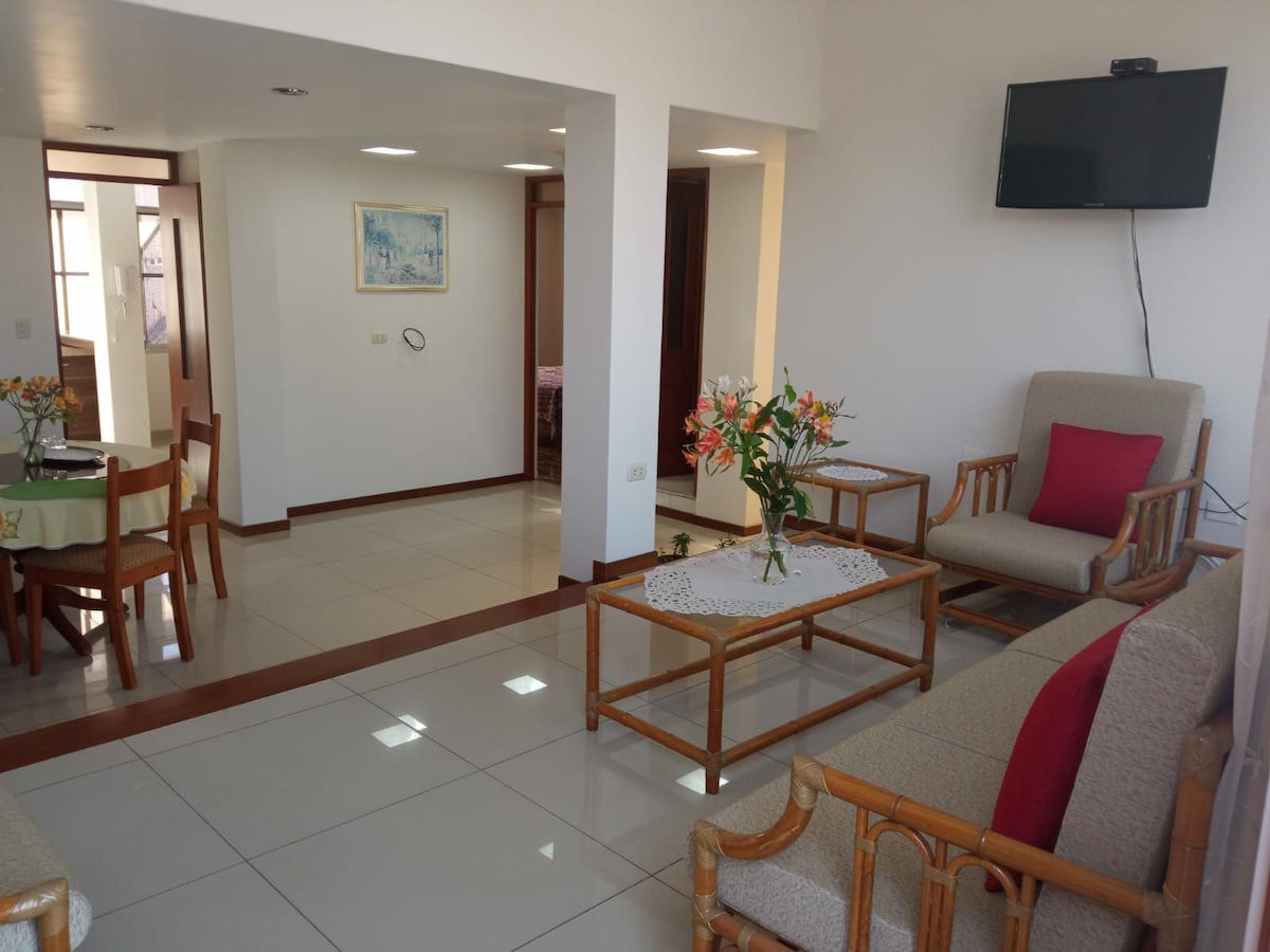 Your private space in Arequipa 🏡 Enjoy a spacious, comfortable, and cozy apartment — perfect for families, groups of friends, or business travelers looking to feel at home. Located in a quiet and safe residential area with easy access to shops, restaurants, and transport to the historic center. Relax after a day exploring the city and enjoy the comfort, privacy, and security you deserve. It will be a pleasure to host you and make your stay in Arequipa unforgettable. 💫