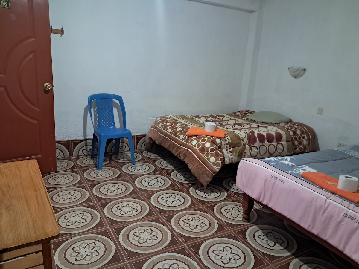 Casa familiar con todos los servicios básicos y tanque de agua de 600 litros. Muy cerca de la playa y cuenta con espacio en la cochera hasta para dos vehículos, con camas hasta para 8 personas.