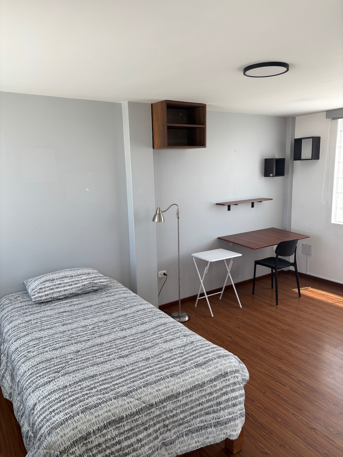 Disfruta del permanente sol de Arequipa en un espacio acogedor que hará grata tu estadía, está ubicado en el distrito de JLBYR dentro de una vivienda familiar en el 3er piso, es una zona comercial a 12 minutos del centro histórico. El espacio cuenta con 2 habitaciones con cama de 1.5 plz, ropero y cómoda, baño, una mini cocina y una sala comedor, adicionalmente cuenta con una amplia terraza donde podrás disfrutar del lindo clima. También ofrecemos el servicio de lavandería sin costo adicional.