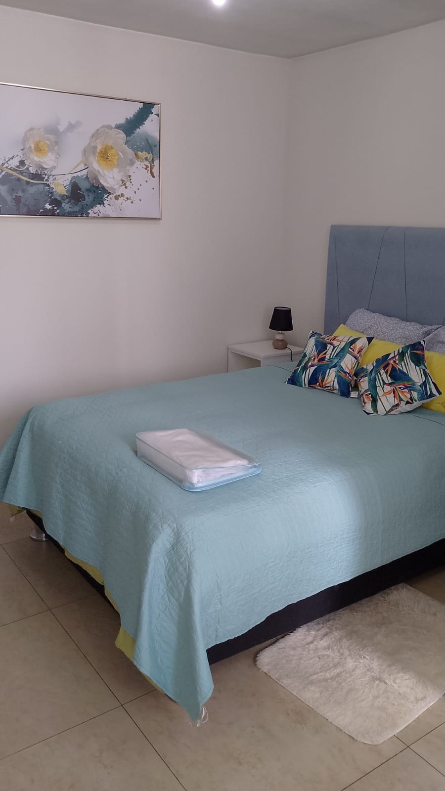 Departamento a 5 min del Mall Aventura Zona tranquila, completamente equipado TV con WiFi Netflix y Amazon Zona residencial 1 habitación con cama King y 1 Sofá cama king a 10 min del centro de la ciudad y cerca la campiña 1 baño Cocina completamente equipada con estufa a gas y por inducción Cámaras de seguridad controladas desde la sala Lavadora y secadora de ropa cerca al terminal terrestre Se presta indicaciones y facilidades para realizar turismo Estaremos gustosos d recibira su familia