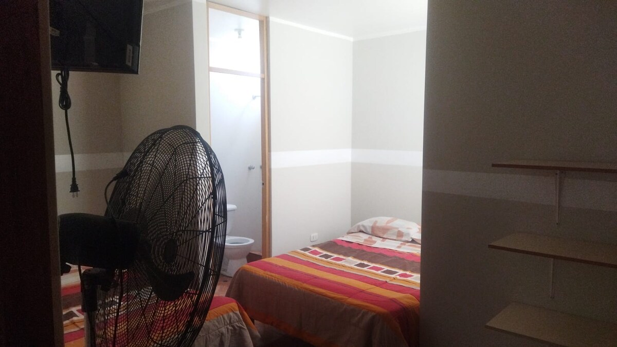 Cozy room with an independent entrance in Nazca, perfect for couples, small groups, and small families. Located on the first floor, this modern space features a double bed, a single bed, a full bathroom with hot water, a small living area, bar fridge, a standing fan, and Wifi. It includes cable TV, access to shared kitchen & laundry facilities; spacious parking. Situated in a safe area, just a 15-minute walk from the main square. An ideal choice for a comfortable and relaxing stay in the city.