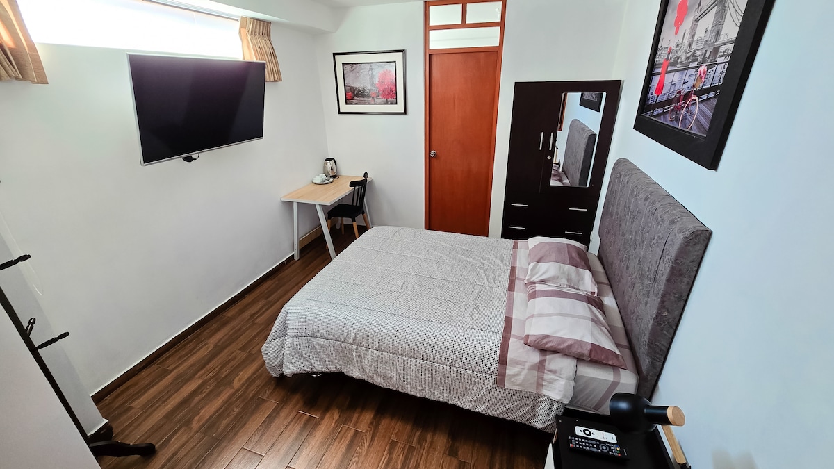 Excelente habitación con entrada independiente y baño privado. La ubicación es excelente ya que estas en el centro de la ciudad, a 7 minutos de la plaza de armas caminando.