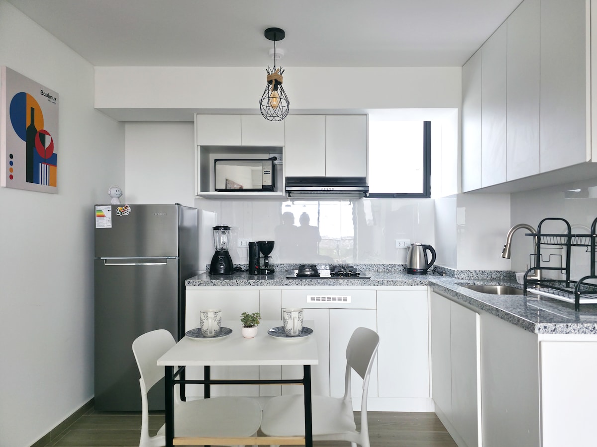 Disfruta de los mejores atardeceres de Arequipa en un pequeño pero calido monoambiente. Incluye habitación principal con sala y escritorio, mini kitchen, baño privado y terraza. Cuenta ademas con Airfryer, horno microondas, licuadora, sanguchera entre otros electrodomésticos, espejo de cuerpo entero, tv 55", equipo para ejercitarse Los servicios de parrilla, sombrilla y lavandería tienen un costo adicional, consultar previamente.