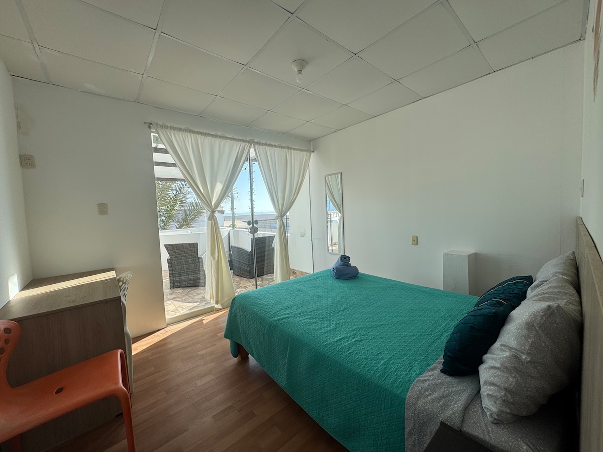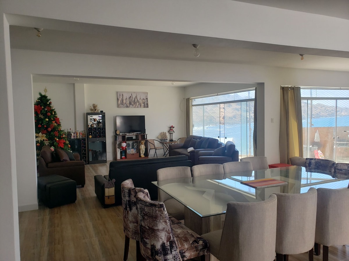 COSTA PALMERAS. Se alquila el 1er piso. ENGLISH SPOKEN Desconectate de tus preocupaciones en este espacio amplio y sereno. Acceso al primer piso y a la terraza de esta maravillosa casa, piscina de techo (a coste adicional), BBQ, lavadora, canchas, playa privada. Dependiendo del número de huéspedes se habilitan: 2 cuartos con 4 camas dobles y 2 cuartos con cama matrimonial. Ideal para una familia grande o teletrabajo en un lugar muy agradable. A 10 mins de Matarani, 7 de Mollendo o Mejia.