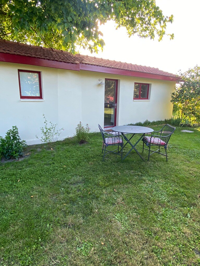Maisonnette située au coeur d'un grand jardin arboré, au calme, à proximité de la piste cyclable, des forêts, de l'eau-baignades - plages océanes & plages du bassin, activités nautiques, ports ostréicoles & de tous commerces. Terrasse ombragée & hamac. Confort : linge de lit, de toilette, de cuisine & vélos à disposition. Accueil jusqu'à 3 pers. Bb/enf. bienvenu. Télétravail : bon réseau wifi (routeur). Accès facile Arcachon & Bordeaux. A l'envie, petit déj' à la carte en supplément sur place.