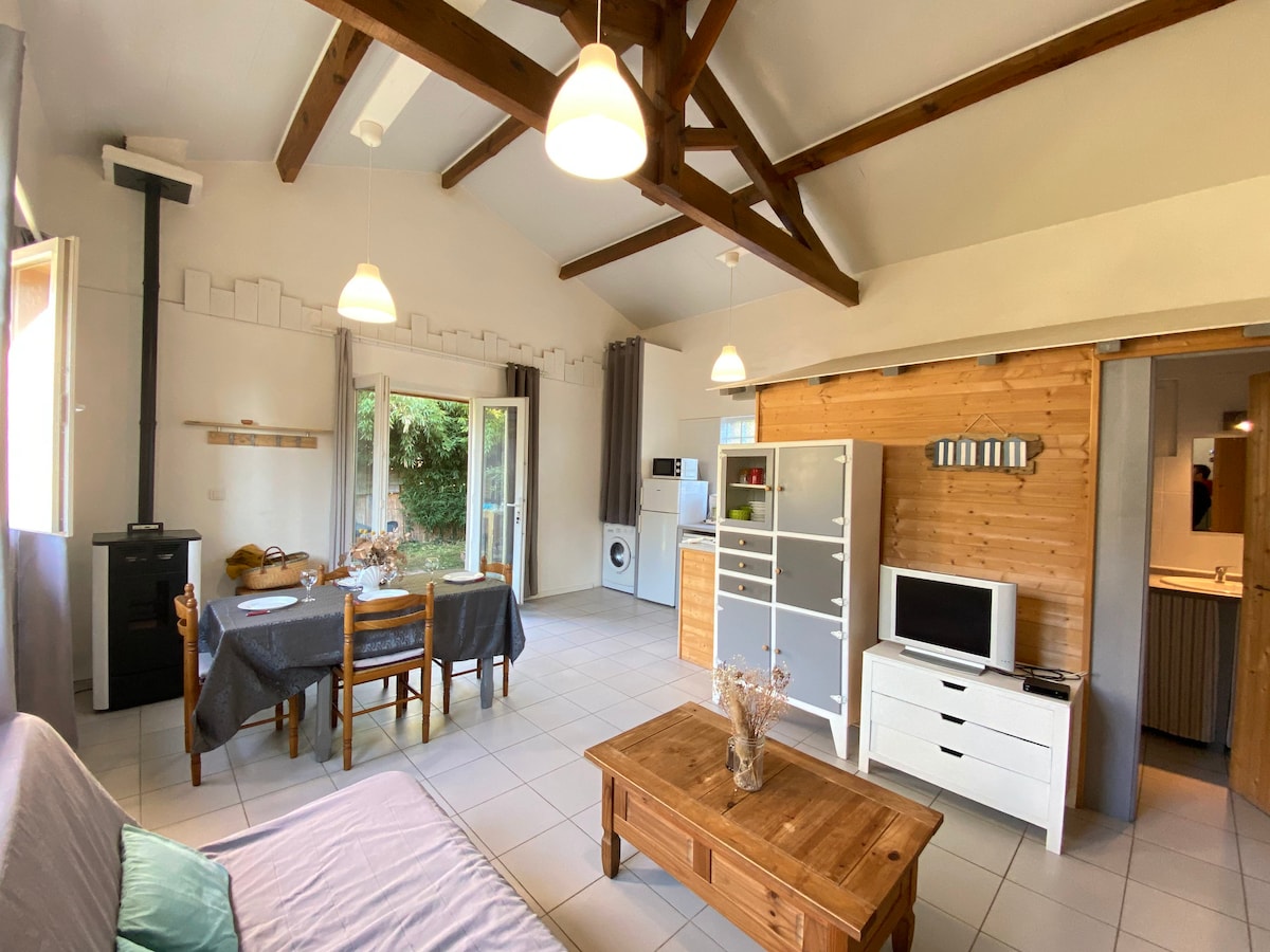 Niché sous les chênes et au calme nous vous invitons à découvrir notre charmant studio neuf de 40m2, idéalement situé entre Arcachon et le Cap Ferret. Ce studio, à la fois spacieux et confortable, est équipé d’une cuisine moderne, d’une climatisation réversible et d'un espace de travail équipé d’une connexion fibre. Une place de parking est à votre disposition avec possibilité de recharger votre véhicule électrique.