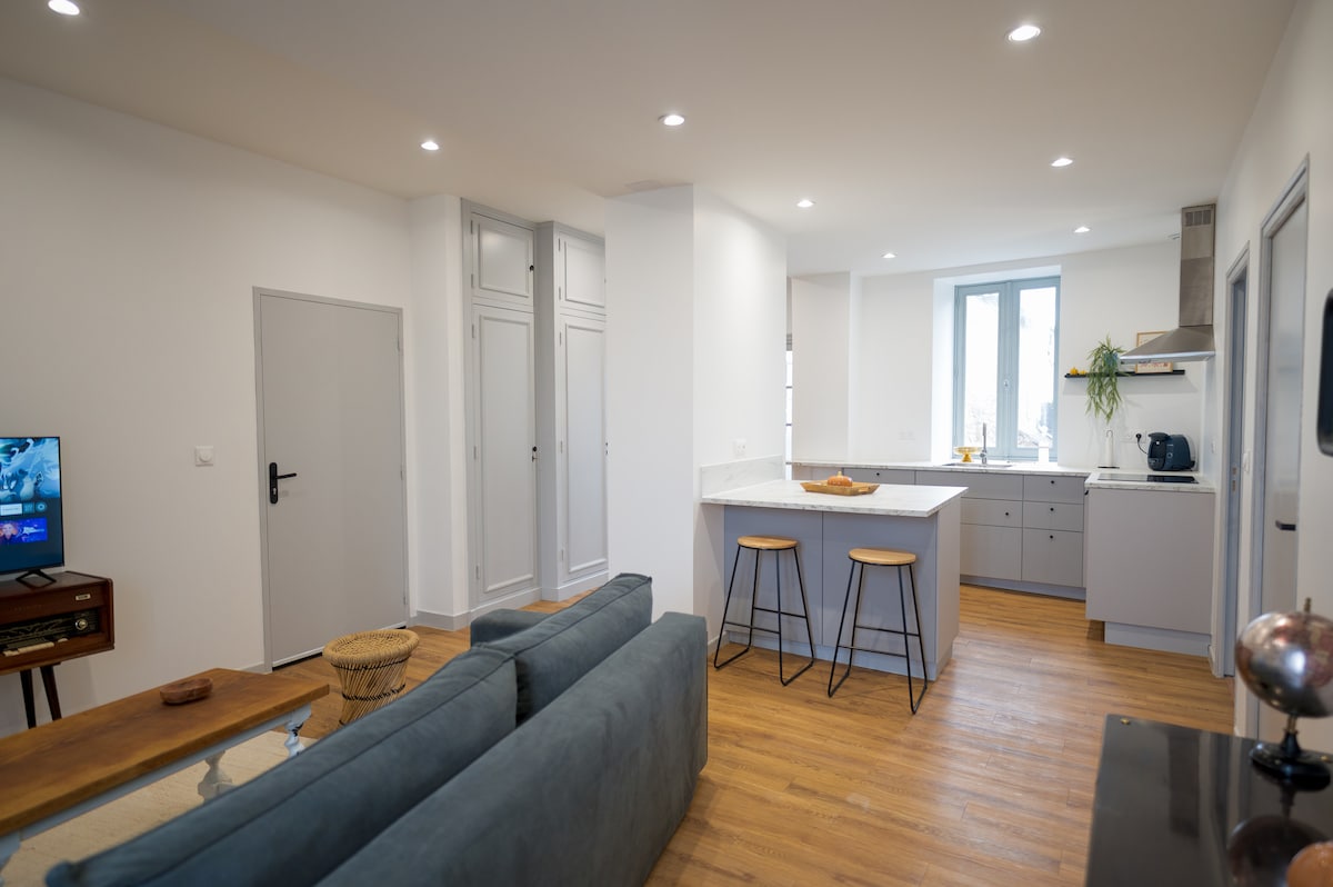 Dans une ancienne fabrique de béret, vous trouverez ce chaleureux appartement entièrement rénové. Situé dans l'hyper centre d'Oloron sainte marie face au jardin public un endroit calme avec toutes les commodités alentour, c'est le meilleur endroit pour profiter de votre séjour dans cette ville historique.