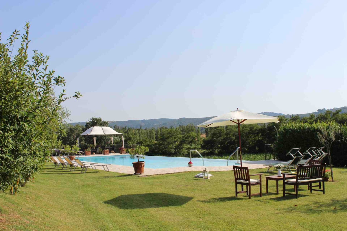 Enter in this compendium of history surrounded by nature. The atmosphere of this barn will warm your heart along a path that passes through the Tuscan style, the Italian design of the 70s and 80s and the use of natural materials such as wood, lime and glass You can relax, sipping a glass of wine and admiring the sunset reflected in the mirror of water of the swimming pool, sitting comfortably in an armchair in the garden behind the apartment. Stroll among the vineyards and olive trees.