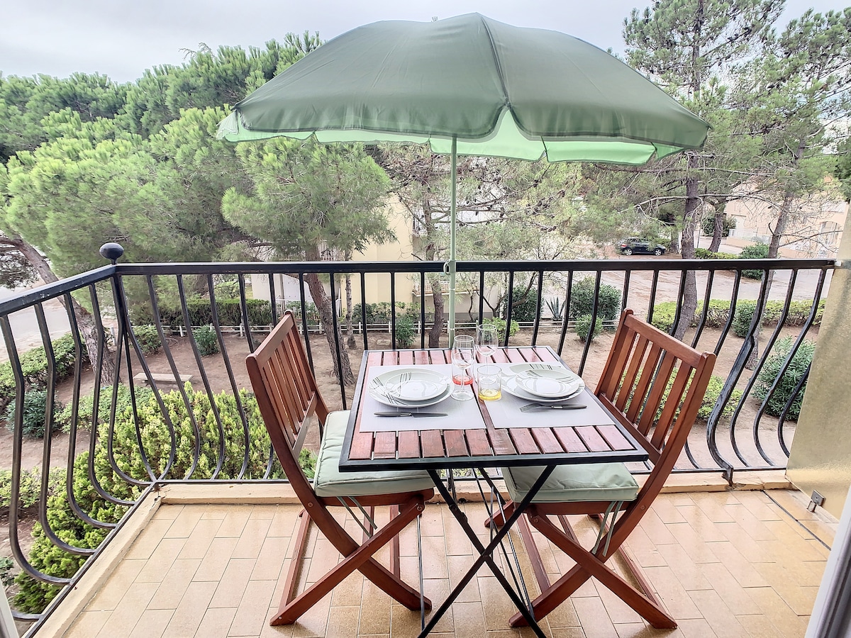 Appart T2, entièrement rénové , très lumineux avec jolie terrasse vue mer, dans résidence avec piscine à 20 mètres de la mer à pieds -1 chambre séparée, draps fournis, lit en 140 cm, TV -SDB avec baignoire, serviettes fournies -WC -entrée avec placard -Cuisine entièrement équipée (micro -ondes, cafetière Senséo, frigo/congélateur, plaque 4 feux, four, grille pain, lave-vaisselle, Lave-linge) - Séjour, couchage canapé rapido 140 cm, TV, WIFI - Terrasse vue mer et montagne avec table et chaises.