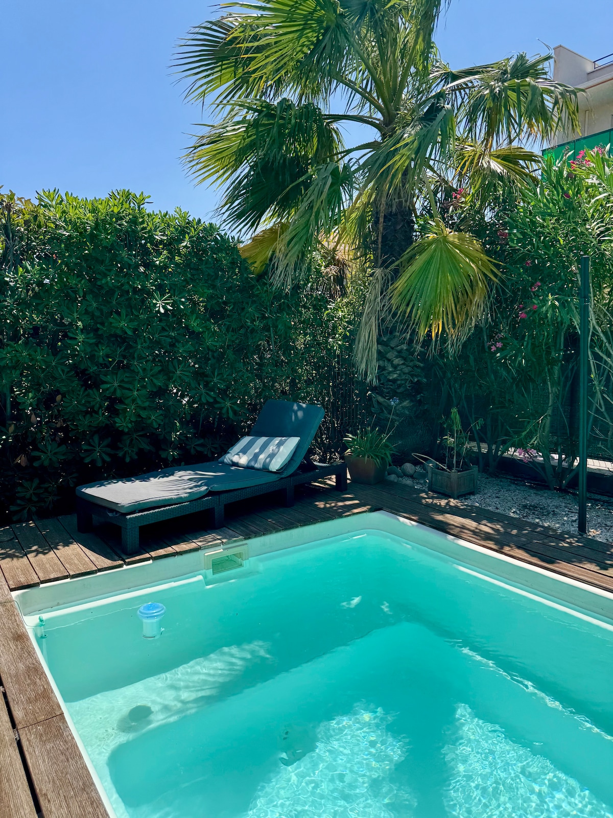 Découvrez ce logement atypique pour vous faire passer des moments inoubliables ! Profitez du spa bien chaud l'hiver, tout comme rafraîchissant l'été Ouvert 7/7j , 24/24h Totalement Privatif , à l'abri des regards, niché dans un jardin "intérieur" . Vous serez Étonné ! Cette Maison climatisée est accessible à pieds à quelques mètres seulement des épiceries , boulangerie, petit restaurant, à quelques minutes de la Mer en voiture !