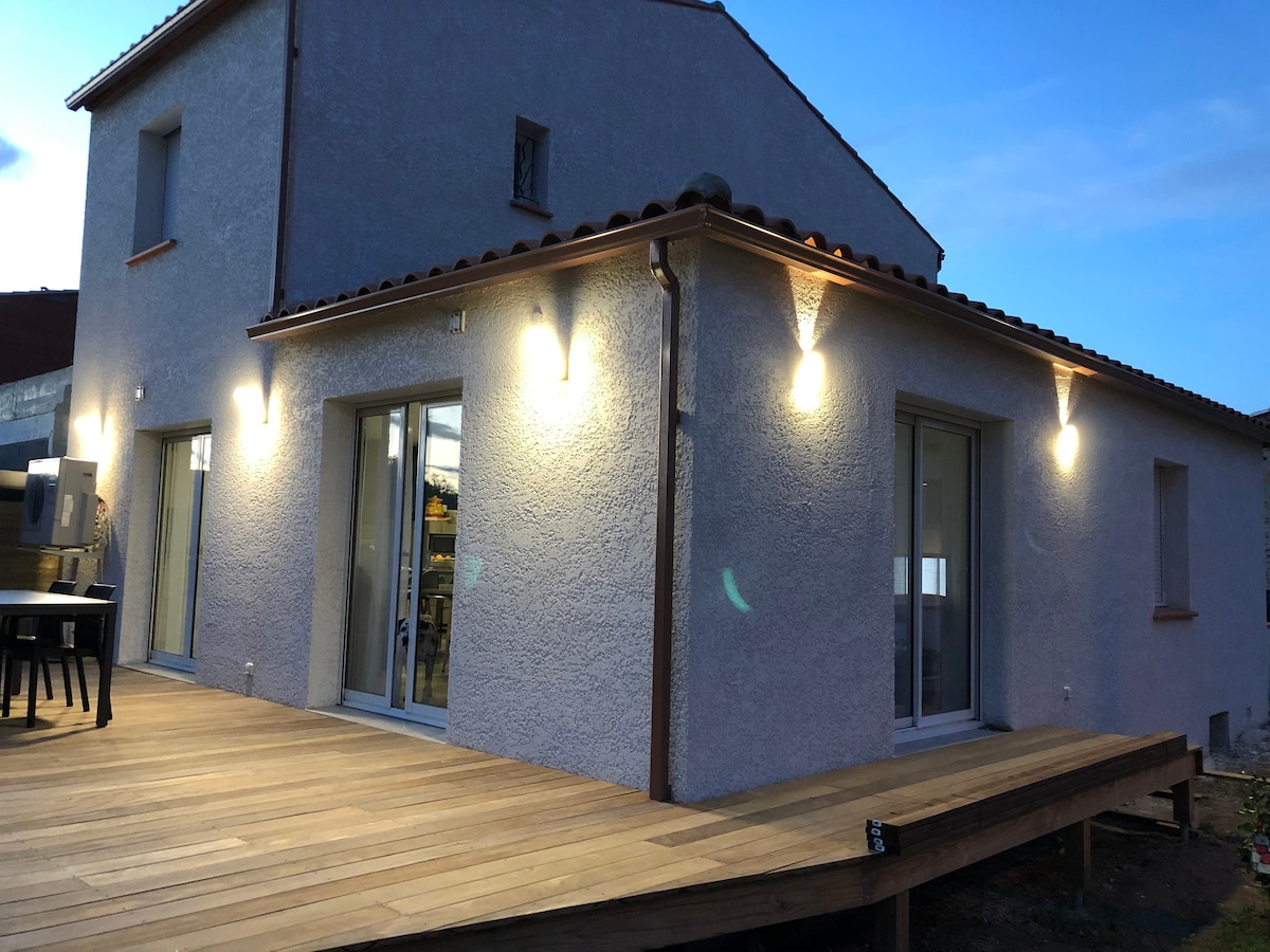 距离海滩 5 分钟路程的安静房屋,配备按摩浴缸
