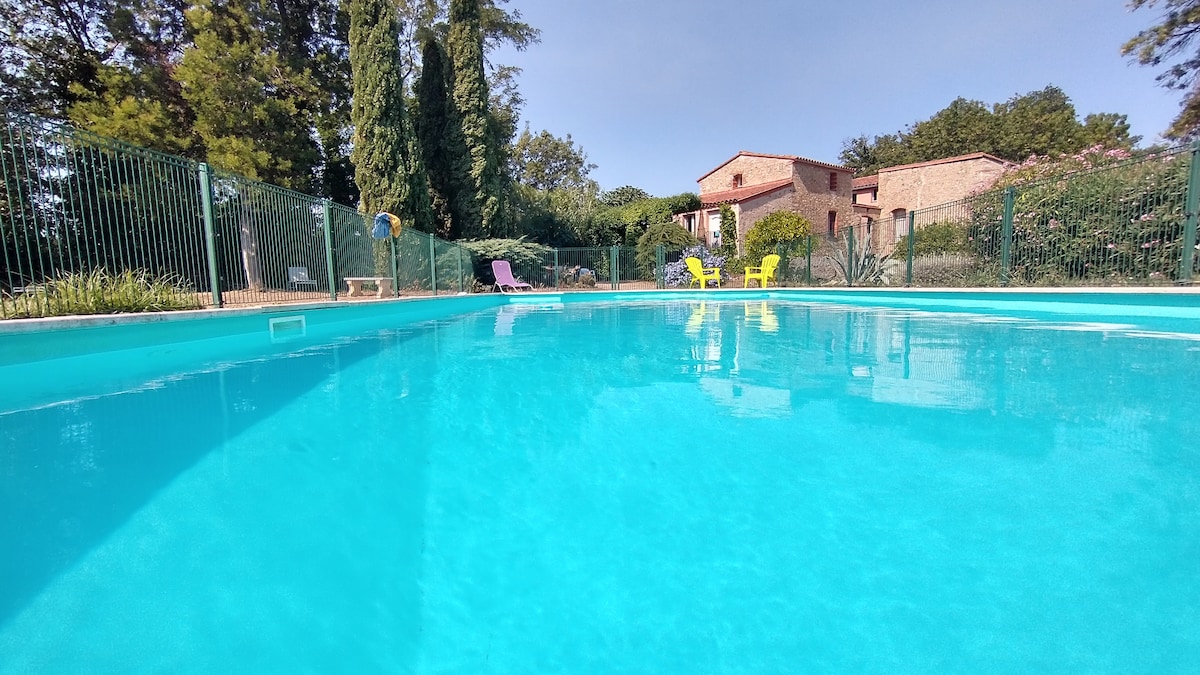 Castell de Blés Domain is a former 19th century wine estate with magnificent views of the Canigou. Situated 2km from the village of Saint-Génis-des-Fontaines, 10minutes from the beaches of the Côte Vermeille and at the foot of the Albères mountains. Chambres d'hôtes and gîtes close to Collioure, Perpignan, Le Boulou, Elne and Céret. Very close to Spain also (15 mins). The heated swimming pool is open from May to the end of October, depending on the weather. It has a jaccuzi-type bubble corner.