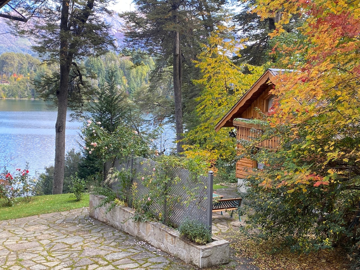 Cálida cabaña de estilo rústico a orillas del lago Nahuel Huapi con hidromasaje, hogar a leña, y deck. Monoambiente creado para el relax y el romanticismo con vista al amanecer y salida de la luna sobre el lago. Smart TV e internet por FIBRA OPTICA con wifi para trabajar. Una kitchinette con todo lo necesario, incluyendo cafetera dolce gusto. Caja de seguridad para resguardar tus notebooks al ir de paseo. Baño completo. Pool, ping-pong. Playa: Kayak y standup paddle. Desayuno continental.