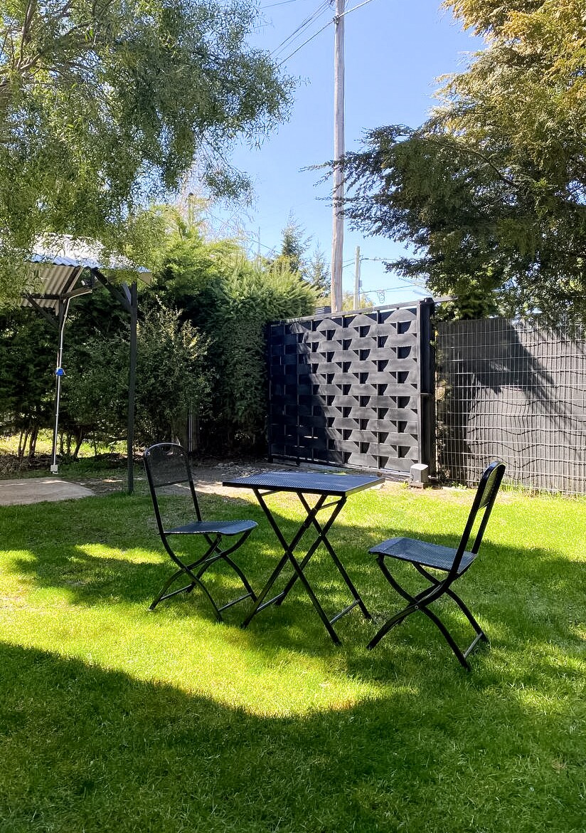 Amplio y luminoso bungalow de 2 ambientes, ideal para parejas, cómodo y acogedor, con excelente ubicación, a pocos metros de centros comerciales, transporte público y a pasos del teleférico Cerro Otto. Cuenta con señal de Wifi, cocina completa equipada con cafetera, pava eléctrica, microondas y heladera con freezer, baño completo con bañadera, espacioso dormitorio con sommier de 2 plazas, smart TV, estacionamiento y jardín para disfrutar, en un espacio tranquilo y familiar.