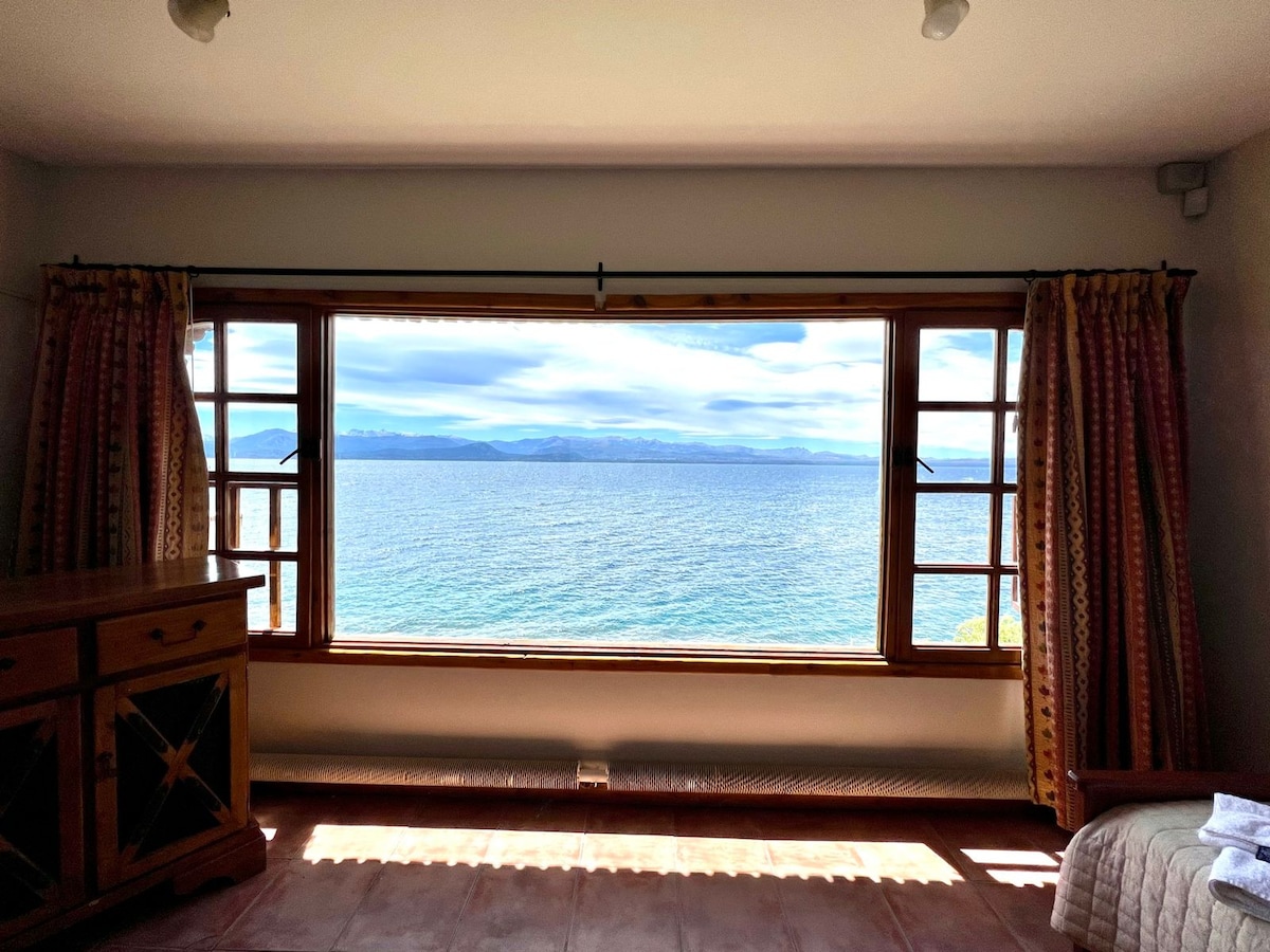 Excelente vista al lago y montañas, muy luminoso, grandes ventanales. Ubicada en un barrio tranquilo a 5 km del centro de Bariloche y 16 km del cerro Catedral (centro de esquí) Ideal para alojarse en cualquier época del año.