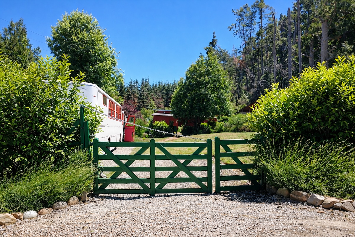 El Bus BoutiqueTime Express está ubicado dentro de la Península de San Pedro, rodeada por el Lago Nahuel Huapi, dentro de un microclima único, de enorme bosque a su alrededor, con variedad de vegetación, naturaleza, paz, armonia y un magnífico silencio con melodías de aves... Contamos con un gran jardín verde, flores, árboles frutales, vegetales orgánicos y un antiguo bosque nativo alrededor. La costa del lago Nahuel Huapi está a 5 cuadras caminando