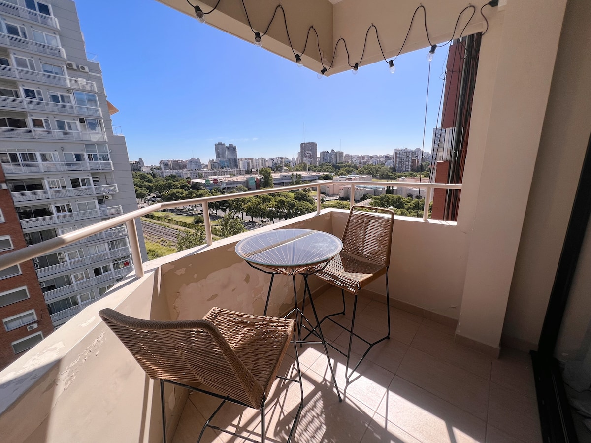 Moderno departamento para 2 personas en Quinta Sección, a pasos del Parque San Martín. Ubicado en la elegante Torre LELOIR, rescatando un tradicional lugar histórico de valor patrimonial. Piso 8 con balcón y hermosas vistas a la ciudad y montaña. Edificio de lujo con seguridad 24 hs, cochera, gimnasio, cancha de básquet y squash, sauna, jacuzzi y piscina. Mercado Gastronómico en el complejo. Bicicletas de paseo. Ideal para viajeros que gozan de la naturaleza, el confort y la gastronomía.