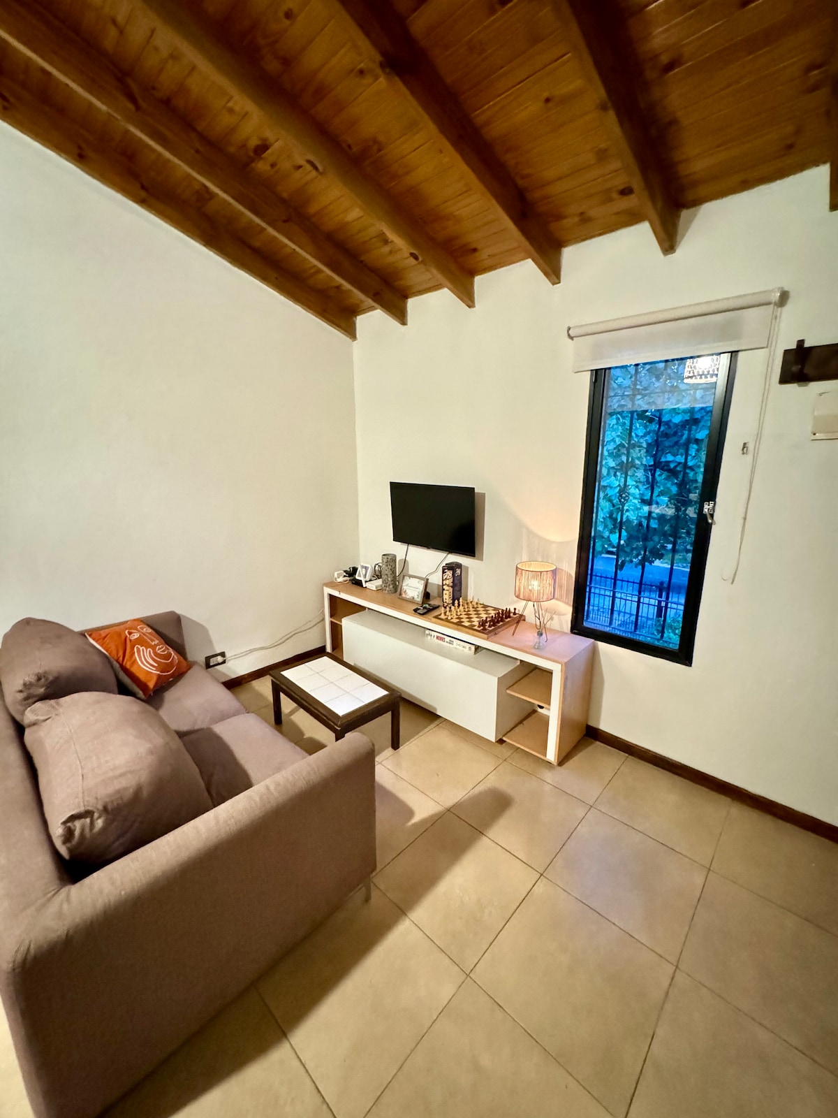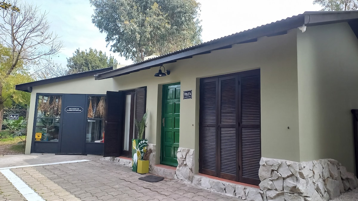 Moderno dúplex en complejo privado, ubicado en Chacras de Coria, uno de los barrios más tradicionales de Mendoza. ideal para pasear y disfrutar de la paz del lugar. Cuenta con dos habitaciones y está completamente equipado, wifi, Smart TV, parrilla, jardín y una pequeña pileta, ideal para refrescarse en verano. Cochera cubierta para 1 solo vehículo, si tienes 2, el segundo debe estacionarse en la calle fuera del complejo. Opción desayuno a costo extra.