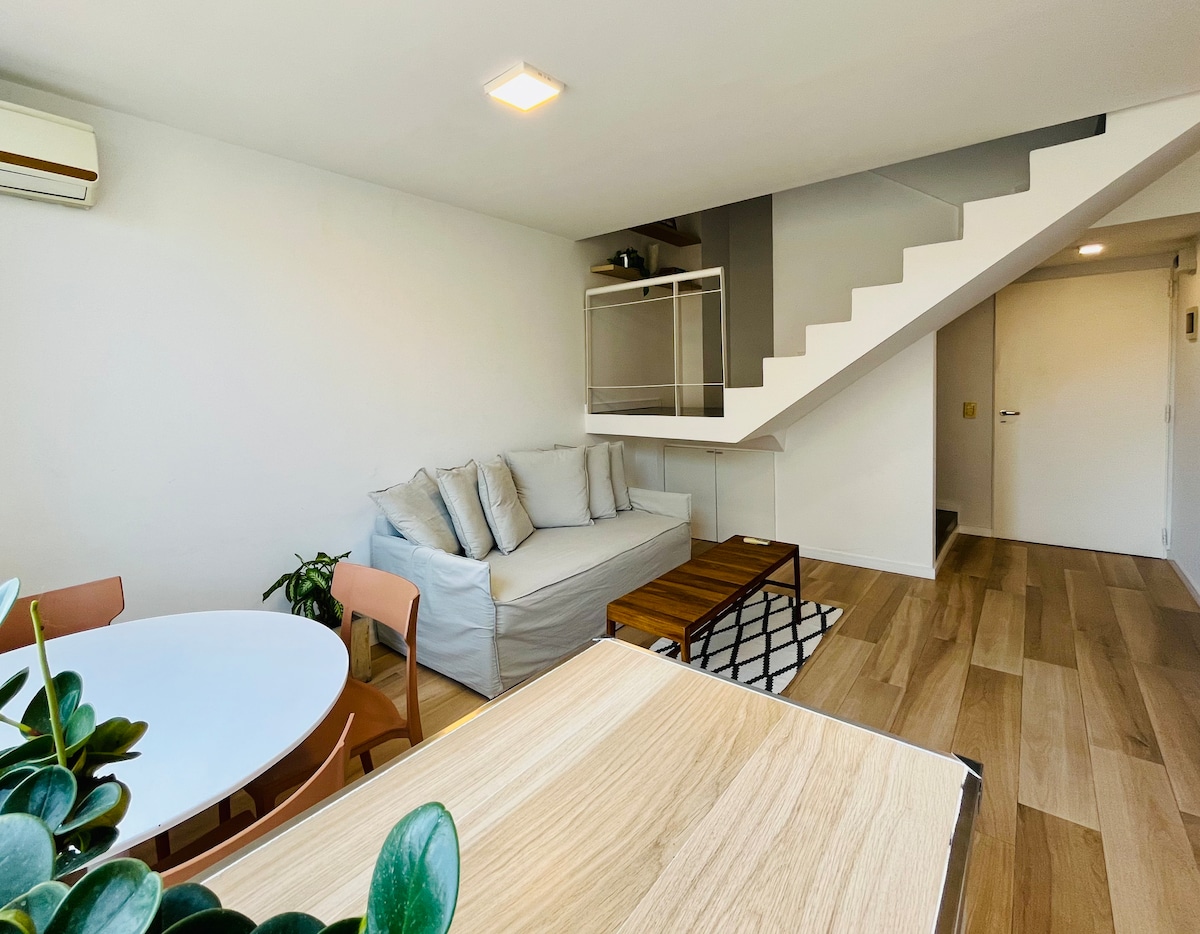 Hermoso loft con diseño industrial en torre de categoría en el corazón de Palermo Hollywood, una de las mejores zonas en Buenos Aires. En las zonas comunes se podrá disfrutar de dos piscinas una de ellas con vistas increíbles a la ciudad. Además de un GYM completamente equipado. Espacio ozonizado, con internet de alta velocidad, "Alexa" Amazon Echo con Spotify , Smart Tv curvo de 55'' UHD con streaming incluido, Smart Tv 45'' UHD en living, toilette, baño con blanquearía y productos de aseo.