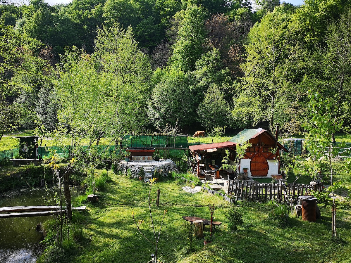 Situat la țară, în apropierea Parcului Național Piatra Craiului, în pădurea de lângă un lac cu pești, coliba cu farmecul ei de poveste te poartă într-o altă lume, departe de rutina cotidiană. Se încearcă imitarea unui trai arhaic. Are un design unic. Autonom și ecologic. Coliba nu se adresează celor pretențioși, este o experiență nu o simpla cazare. Fără curent electric de la rețea, cu un sistem fotovoltaic de 10 W pentru a încarca telefoane si 2 becuri pentru a ilumina noaptea.